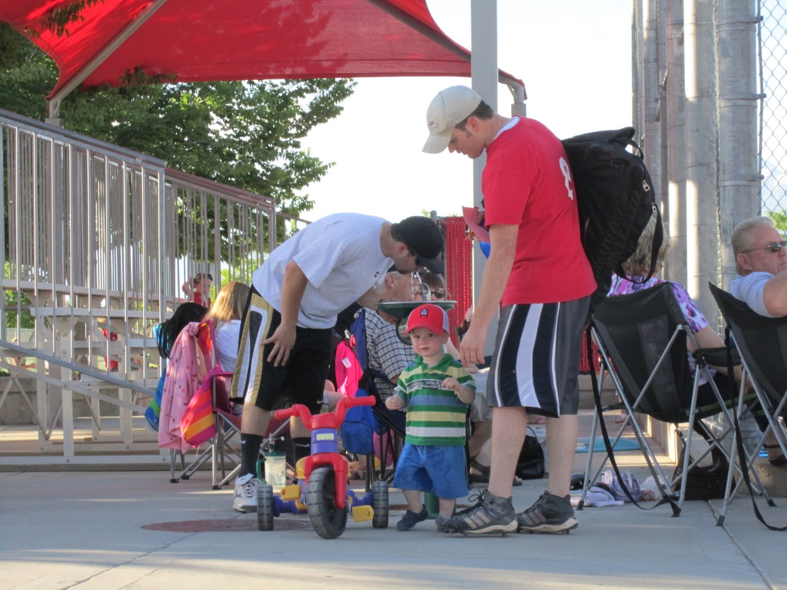 Enjoying Daddy's game- that's right, broken thumb and all Mike will still play. And here he is pitching for two games in a row!